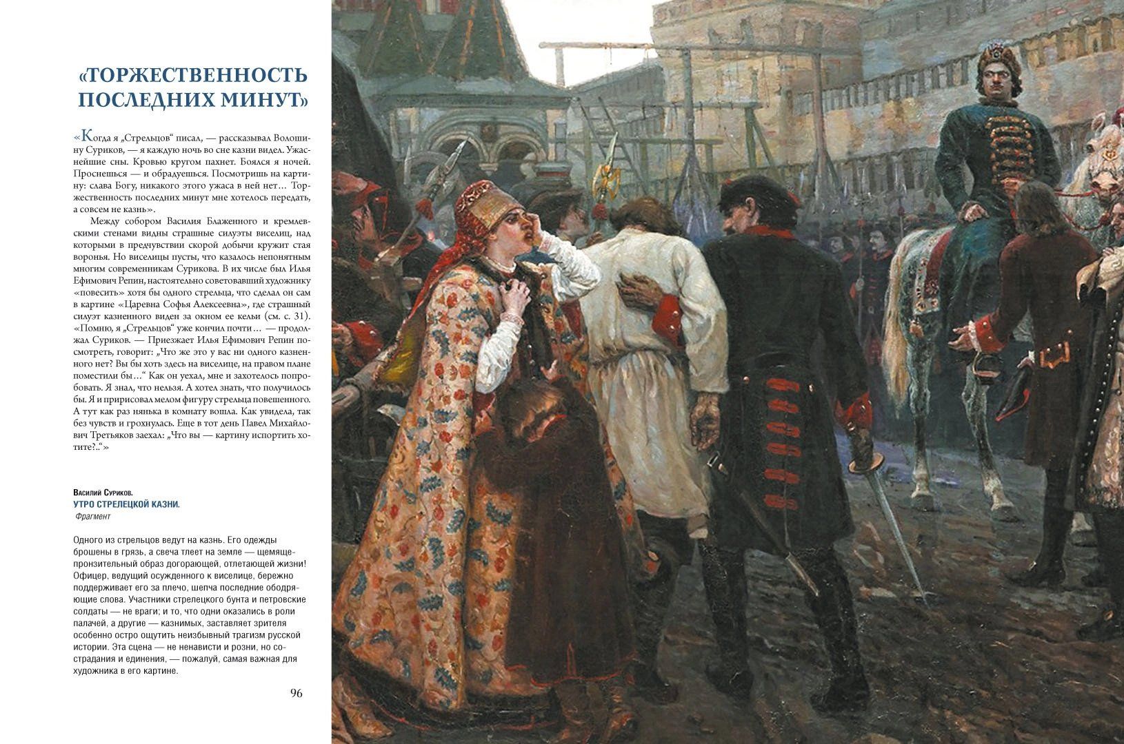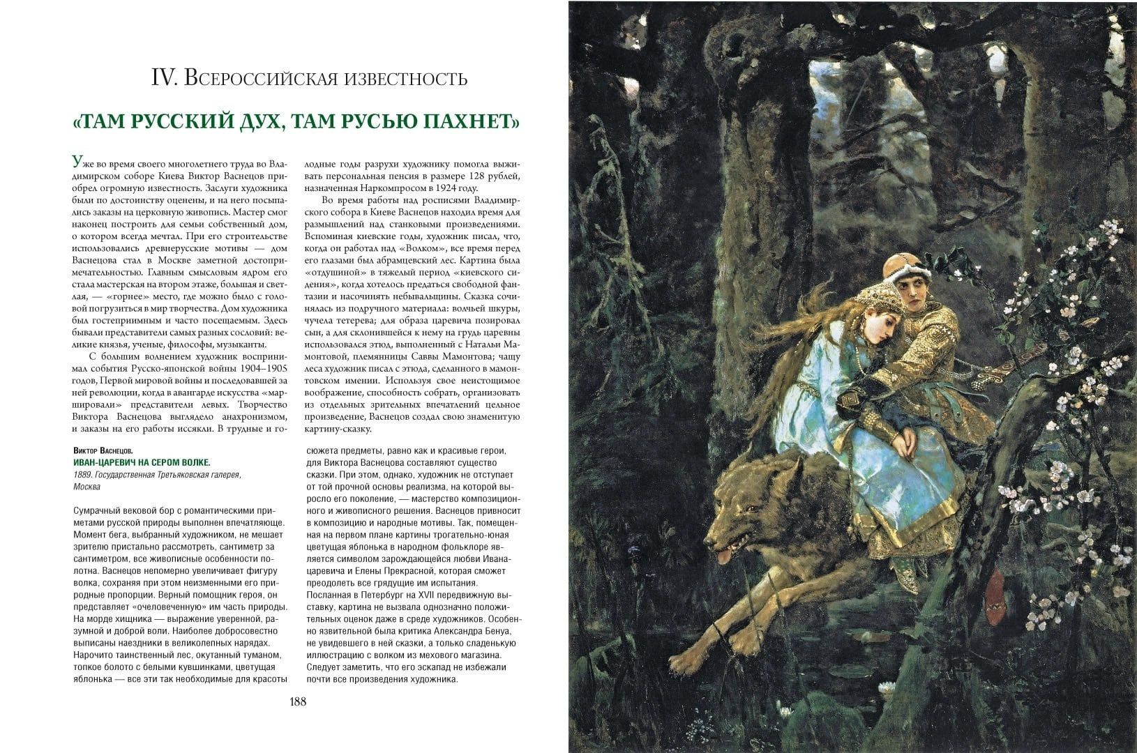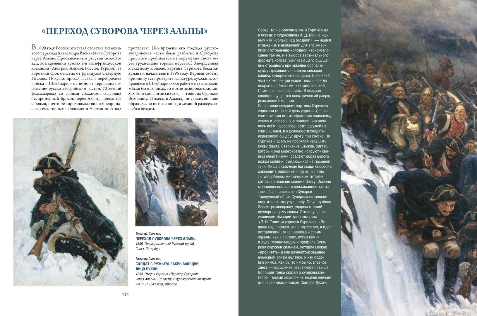 This book introduces the work of three iconic figures in Russian fine art: the "great realist" Ilya Efimovich Repin, the "seer of bygone times" Vasily Ivanovich Surikov, and the "hero of Russian painting" Viktor Mikhailovich Vasnetsov. The monumental historical canvases, scenes from the reality surrounding them, portraits of contemporaries, and epic-fairytale images created by these outstanding artists constitute a unique pictorial chronicle of the Russian people, reflecting the lives and aspirations of our ancestors, creating a multifaceted image of our country, and conveying to us the living pulse of Russia's difficult yet glorious history.