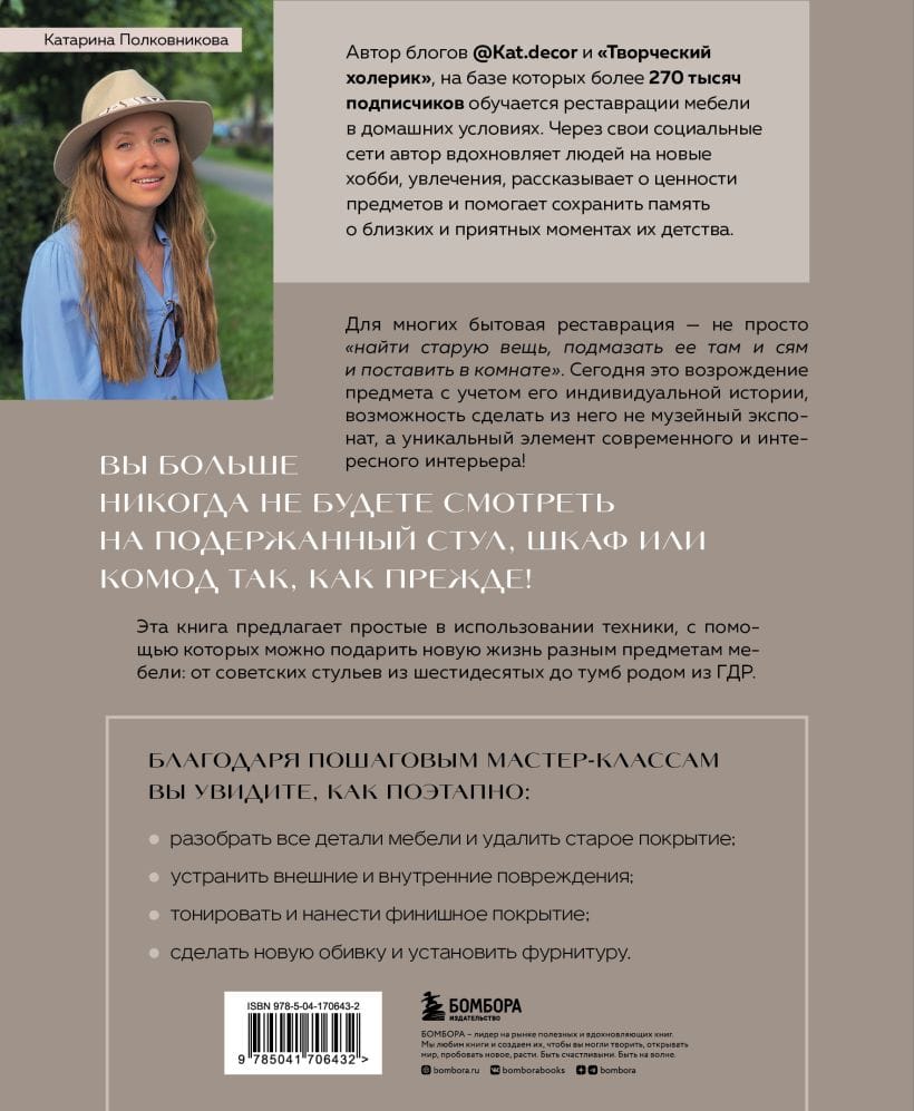 Give old furniture a new life! Today, restoration is the revival of an object taking into account its individual history, an opportunity to make it not a museum piece, but a unique element of a modern and interesting interior! Thanks to step-by-step master classes by restoration expert Katarina Polkovnikova, you will learn how to create original interior items without special expenses.