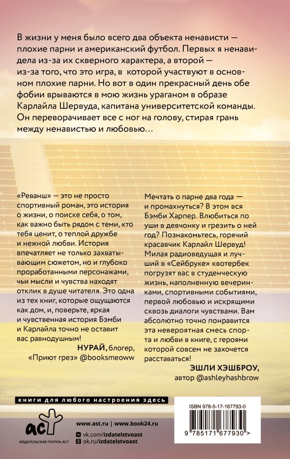 In my life I have only had two objects of hatred - bad guys and American football. I hated the first because of their nasty character, and the second because it is a game in which mostly bad guys participate. But one fine day both phobias burst into my life like a hurricane in the form of Carlisle Sherwood, the captain of the university team. He turns everything upside down, erasing the line between hate and love...