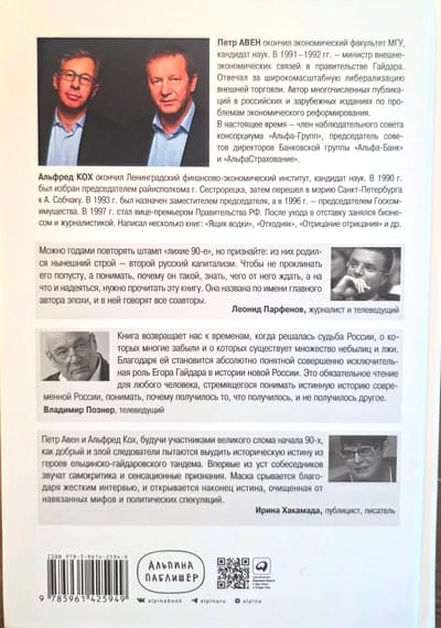 Did Gaidar save Russia from famine and civil war, or were such risks avoided? Could price liberalization have been delayed, or was it inevitable? Were there alternatives to Gaidar's team and its liberal course? What really destroyed the Soviet Union? Why was a truly liberal economy never built in the country, and why did the reforms become "stuck" halfway through?