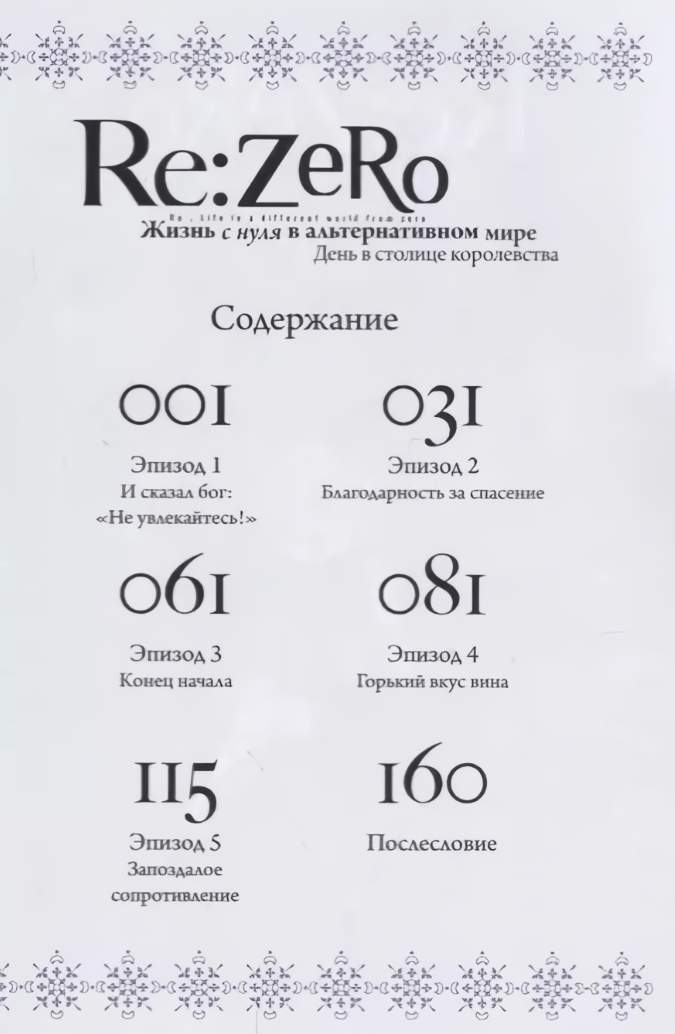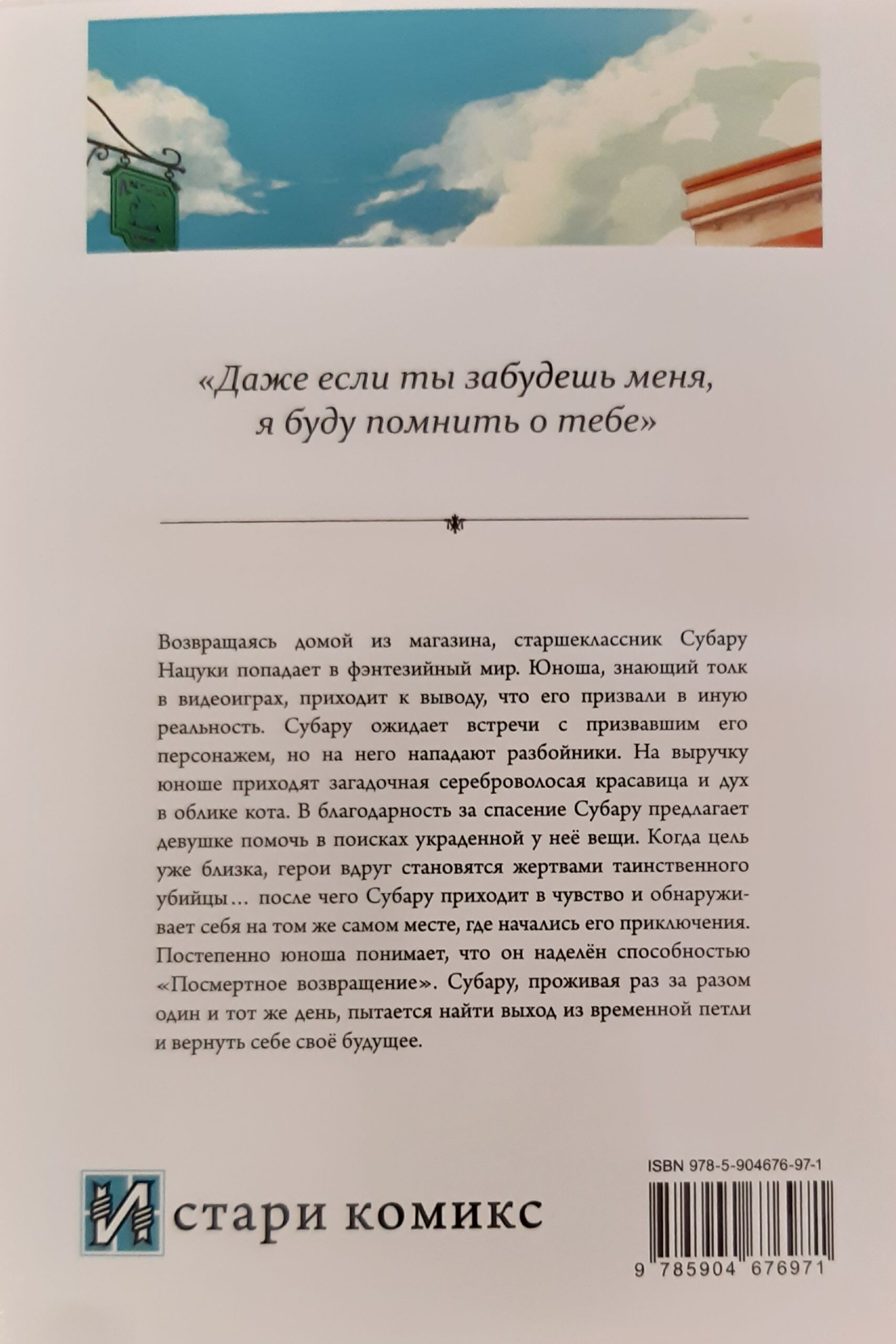 Returning home from the store, high school student Subaru Natsuki finds himself in a fantasy world. The young man, who knows his way around video games, realizes that he has been summoned to a different reality. Subaru expects to meet the character who called him, but he is attacked by bandits. A mysterious silver-haired beauty and a spirit in the form of a cat come to his rescue. In gratitude for his rescue, Subaru offers to help the girl in her search for the stolen item. When the goal is close, the heroes suddenly become victims of a mysterious killer... after which Subaru comes to his senses and finds himself in the same place where his adventures began. Gradually, he realizes that he is endowed with the ability of "Postmortem Return". Subaru, living the same day over and over again, tries to find a way out of the time loop and regain his future.