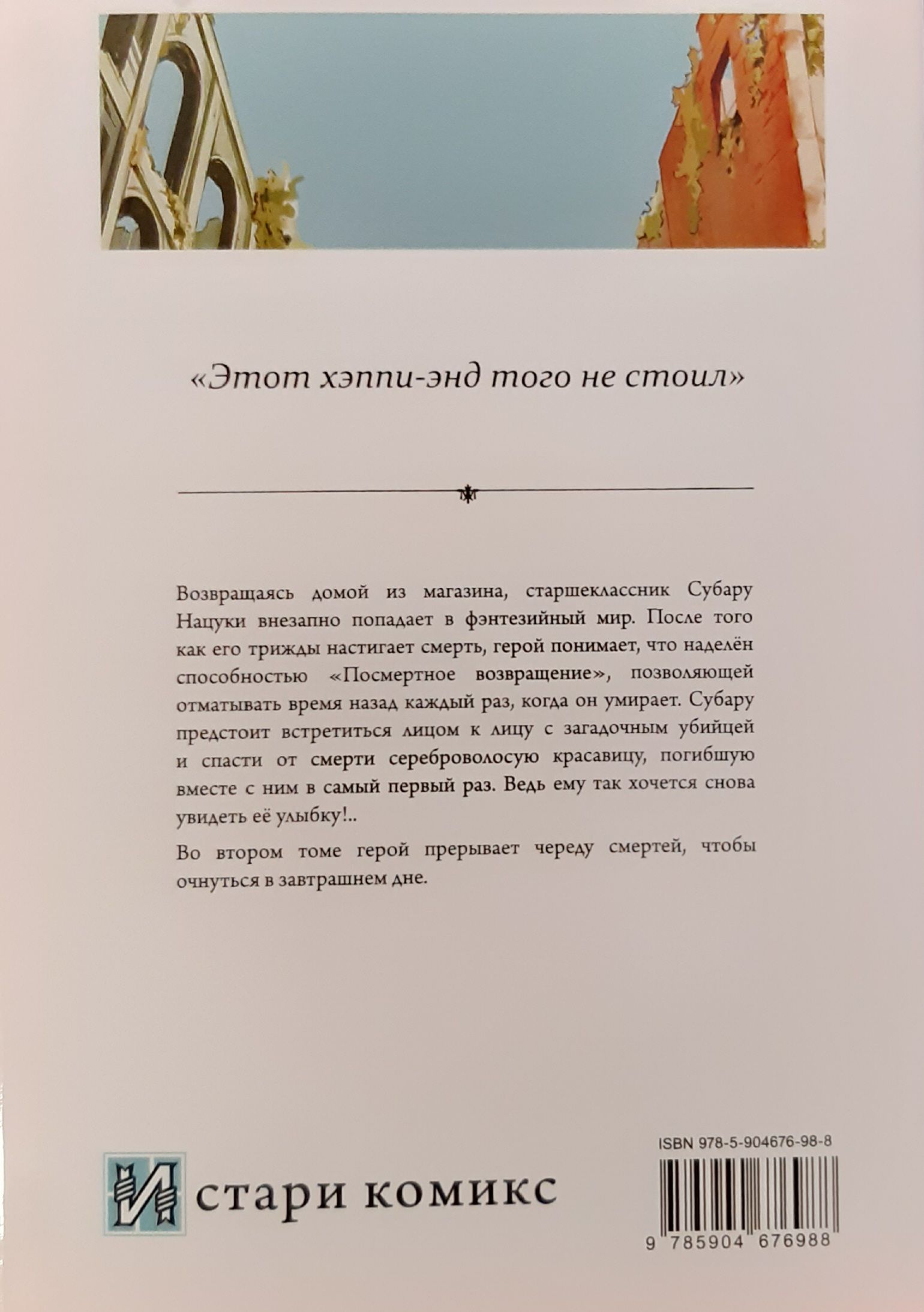 Returning home from the store, high school student Subaru Natsuki suddenly finds himself in a fantasy world. After he dies three times, he realizes that he has the ability of "Postmortem Return", which allows him to rewind time every time he dies. Subaru must face the mysterious killer and save the silver-haired beauty who died with him the very first time. After all, he is so eager to see her smile again!.....