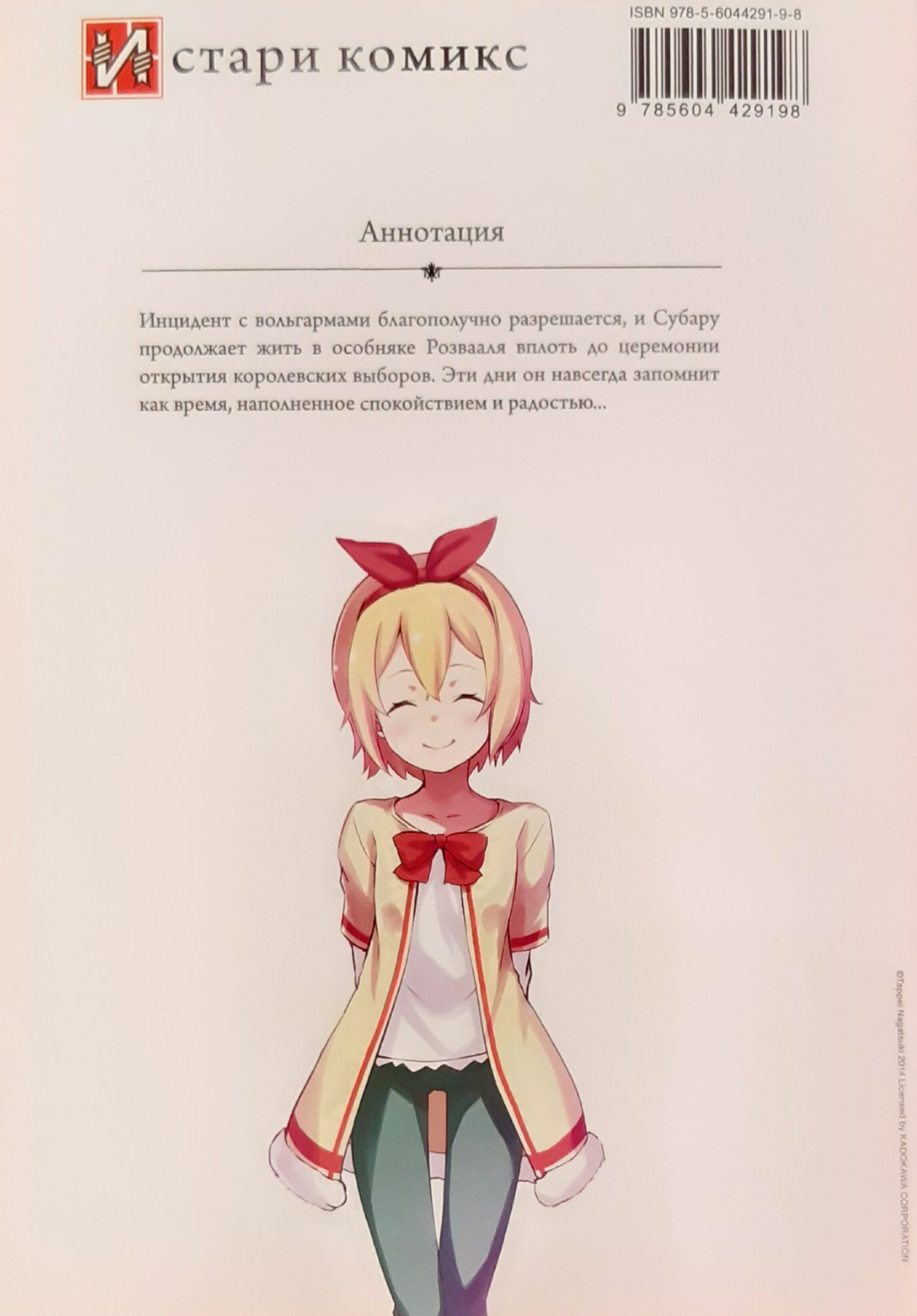The incident with the Volgarmans is resolved safely, and Subaru continues to live in the Roswaal Mansion until the opening ceremony of the royal election. He will always remember these days as a time filled with tranquility and joy....
