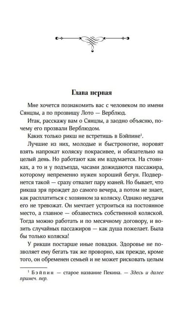Lao She tells the story of one such puller, an orphan named Xiangzi, nicknamed Camel—a simple-minded and honest man whose cherished dream was to save up for his own wheelchair, ensuring a stable income and independence. Xiangzi is determined, denying himself everything; he works from dawn to dusk for four years and nearly achieves his cherished goal, but in one moment, the rickshaw puller loses everything...