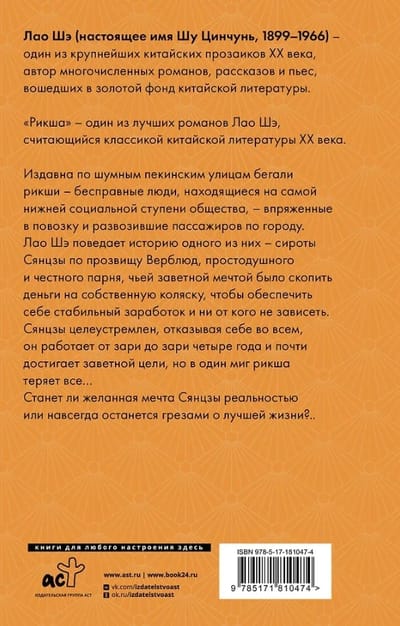 "Rickshaw" is one of Lao She's finest novels, considered a classic of 20th-century Chinese literature.