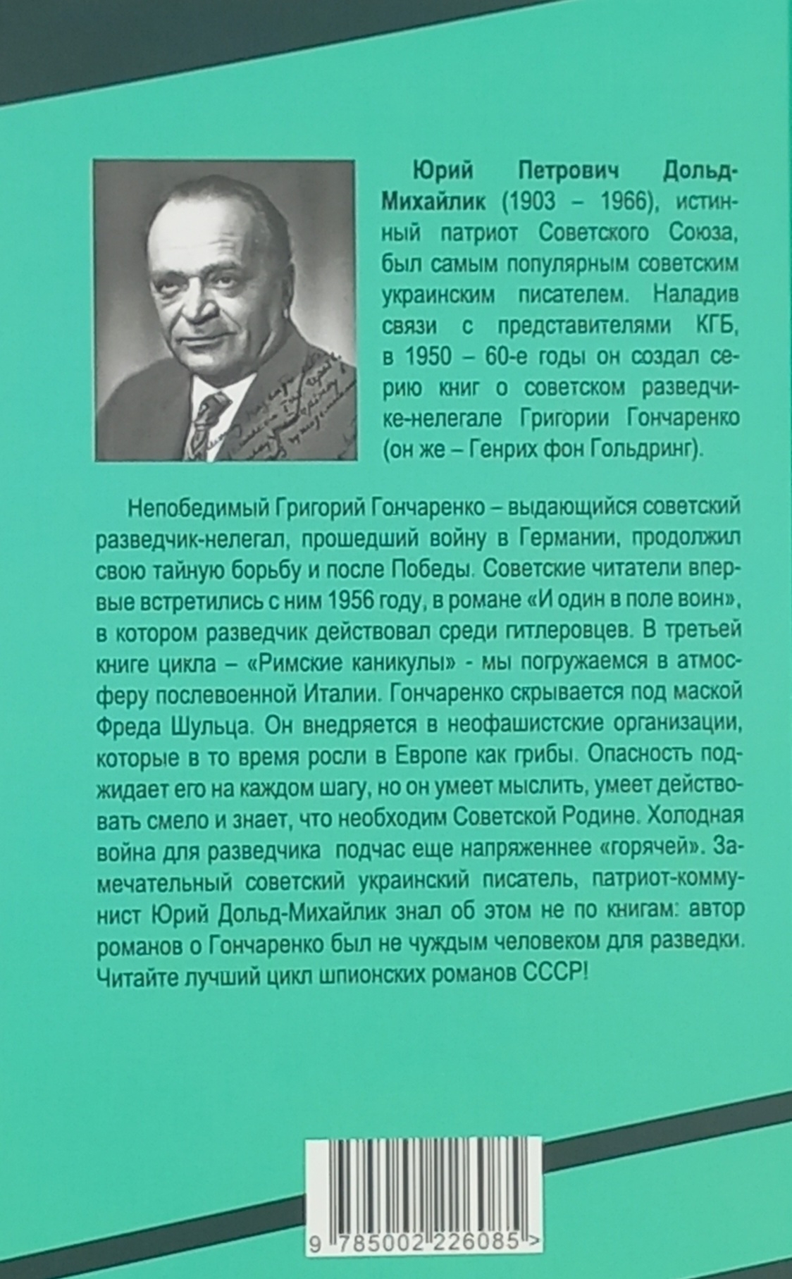 Grigory Goncharenko is an outstanding Soviet illegal intelligence officer who went through the war in Germany and continued his secret struggle after the Victory. Soviet readers first met him in 1956, in the novel “And One Warrior in the Field,” in which the intelligence officer operated among the Nazis. In the third book of the series, “Roman Holiday,” we are immersed in the atmosphere of post-war Italy. Goncharenko hides under the guise of Fred Schultz. He infiltrates neo-fascist organizations that were growing like mushrooms in Europe at that time. Danger awaits him at every step, but he knows how to think, knows how to act boldly, and knows that he is needed by the Soviet Motherland. The Cold War is sometimes even more intense for an intelligence officer than the “hot” one. The remarkable Soviet Ukrainian writer, communist patriot Yuri Dold-Mikhailik knew this not from books: the author of the novels about Goncharenko was no stranger to intelligence. Read the best series of spy novels of the USSR!