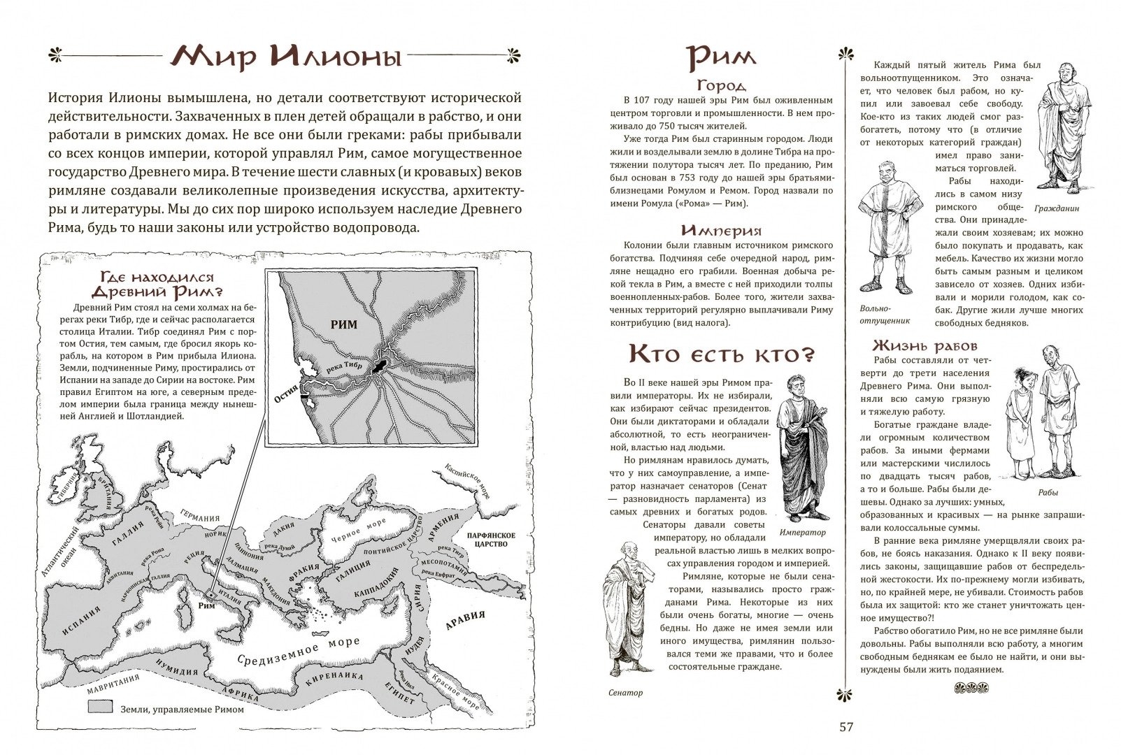 I am starting a new diary about a new life in the third year of the 221st Olympics. The day after tomorrow, we sail to Egypt. In a galley! I have never been outside of Lesbos, our Greek island. Here in Mytilene we live in a big beautiful house. But in Egypt, our house will be even bigger. Everything will be different. I can't wait for the adventures to begin... Do you want to find yourself in ancient Rome, the capital of the great Roman Empire? Go to a performance in Pompey's theater? See the triumph of Emperor Trajan? Watch gladiatorial fights? Bathe in the baths of Nero? A visit to the Senate? Iliona will tell you everything a resident of the Eternal City needs to know! The world of ancient Rome is brought to life by artist David Parkins. His detailed illustrations show Roman life from slave to emperor in every detail.