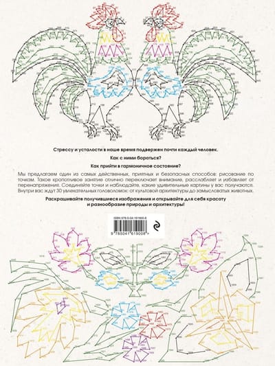 Stress and fatigue in our time is subject to almost every person. How to fight them? How to come to a harmonious state? Give yourself a fascinating evening of puzzles! Inside this edition you will find illustrations on different themes: iconic architecture, intricate ornaments, noble animals and unusual insects. Take a break from the hustle and bustle of everyday life and watch as lions, lizards, owls, and many others magically appear on the page. For convenience, there are multiple colors throughout the illustrations to stay on point and help bring your future paintings to life. The dense paper of the coloring pages will allow you to use different art tools: colored pencils, felt-tip pens, gel or ballpoint pens, paints, pastel pencils or wax crayons. The "Art Therapy" series is a variety of whimsical patterns and fantastic drawings that will give you peace and tranquility and help you get rid of stress. Take a pencil or pen and completely disconnect from the outside world, drawing a thin line from point to point, and after a while you will come back a completely renewed person. When you are done, you can color the drawing.