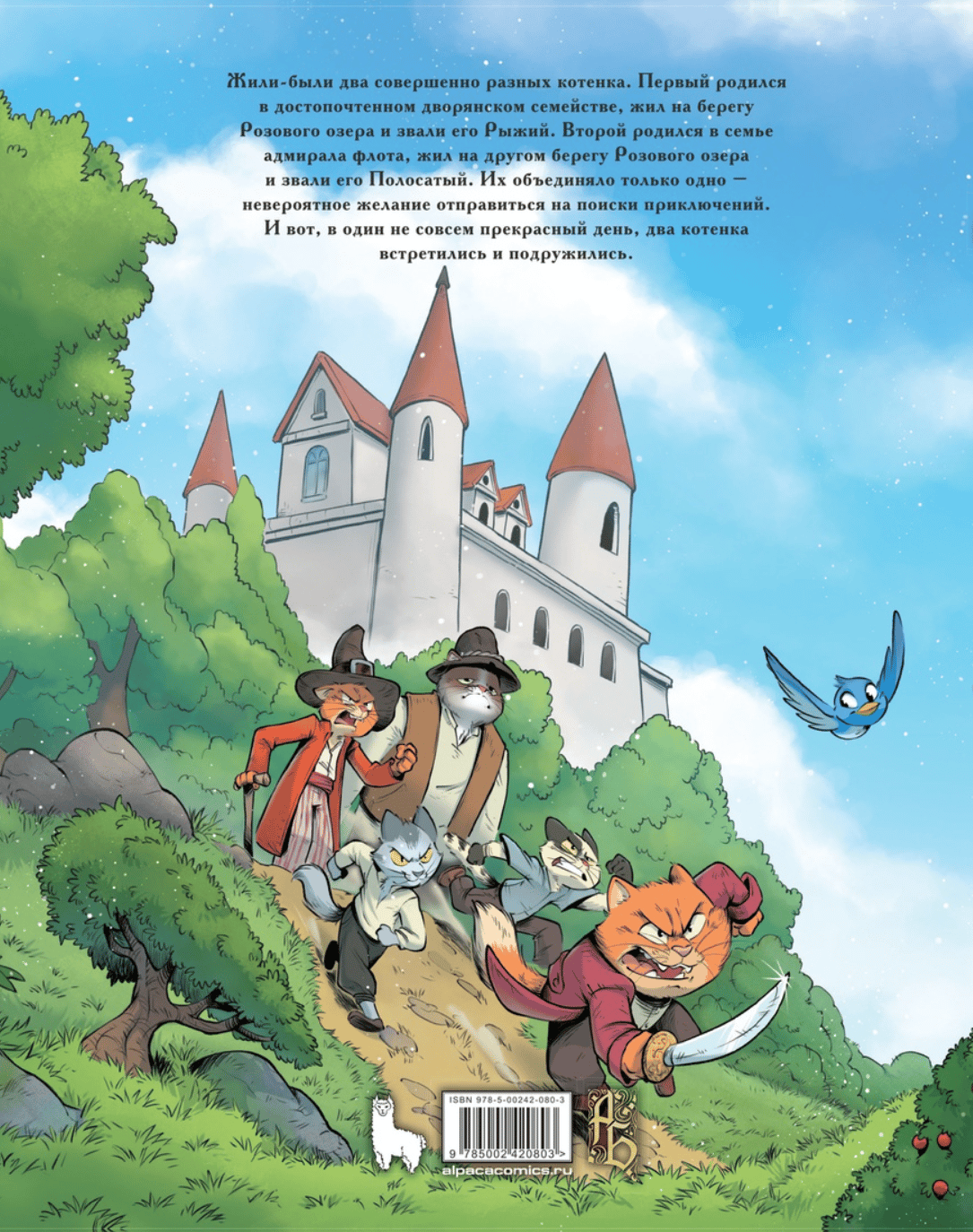 Once upon a time, there lived two completely different kittens. The first was born to a respectable noble family, lived on the shores of Pink Lake, and was named Red. The second was born to a naval admiral, lived on the other side of Pink Lake, and was named Striped. They had only one thing in common—an incredible desire to go in search of adventure. And then, one not-so-fine day, the two kittens met and became friends.