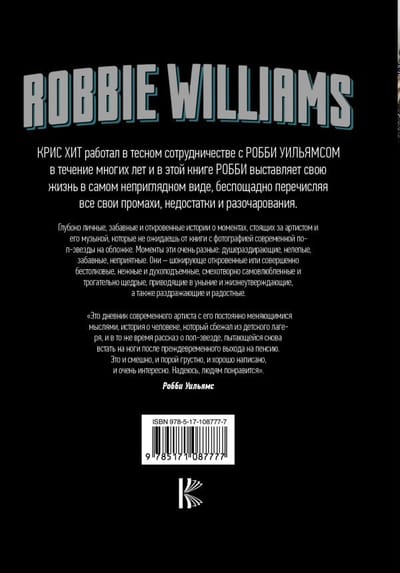 Chris Heath has worked closely with Robbie Williams for many years and in this book Robbie puts his life in its most unsightly form, mercilessly listing all his blunders, shortcomings and disappointments.