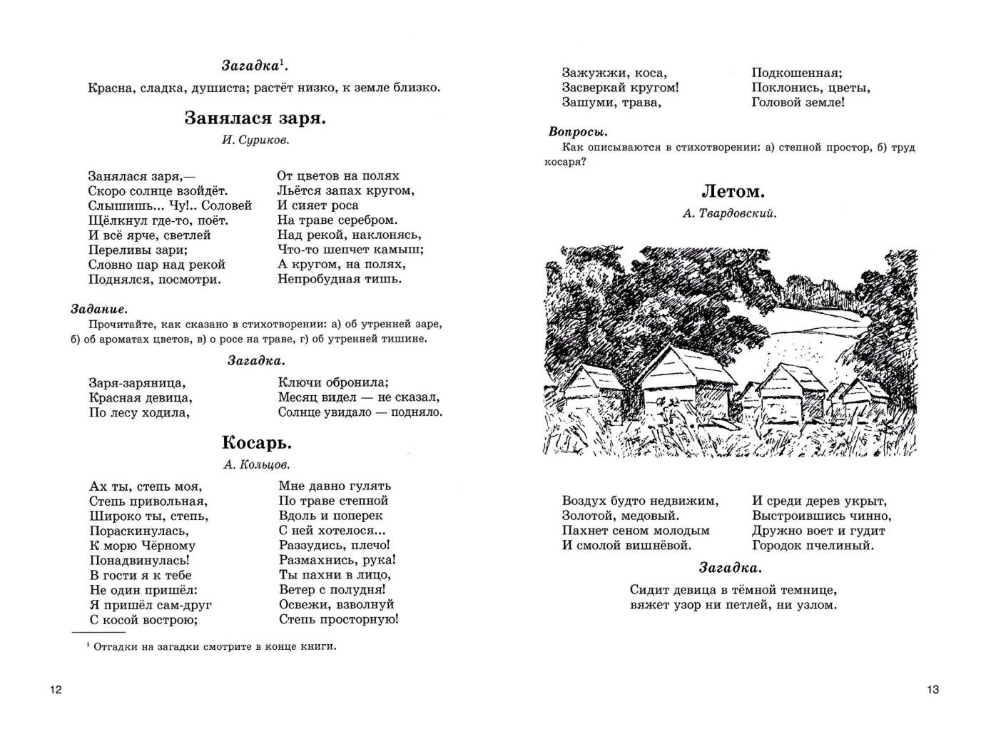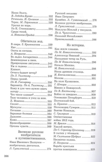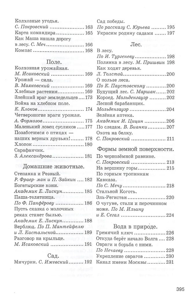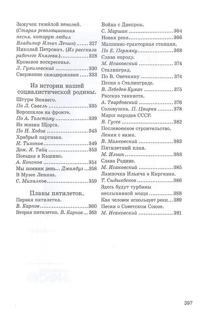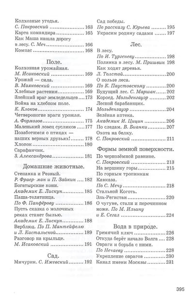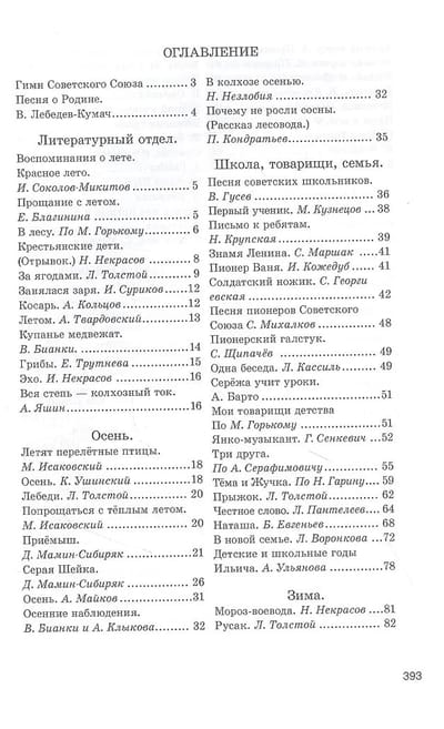One of the important features of Soviet textbooks was the strict and clear selection of material offered to schoolchildren. This edition consists of several sections devoted to different topics. These are "Memories of Summer", "Autumn Observations", "School, Comrades, Family", "Winter", "Spring", "Cities and Roads", "Geography and Natural History", "Pets", "Human Body and Care for It". There are also chapters telling about important milestones in the history of our country and about great Russian inventors and travelers. All topics are illustrated with works by outstanding masters of the word: L. Tolstoy, A. Pushkin, M. Gorky, N. Nekrasov, A. Maykov, A. Chekhov, M. Prishvin, F. Tyutchev, G. Sienkiewicz, G. H. Andersen, V. Mayakovsky, M. Lermontov, M. Saltykov-Shchedrin, A. Koltsov, A. Tvardovsky, A. Barto.