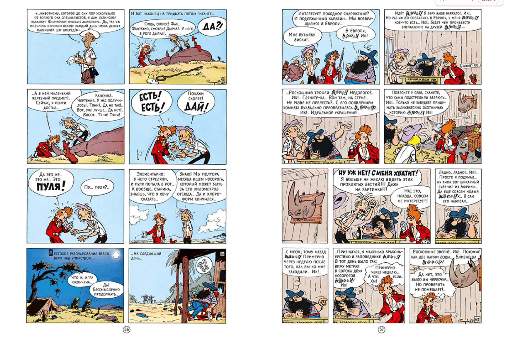 The most important event in Spirou's life was his meeting with André Francken (1924–1997). The talented artist worked on the series for almost a quarter of a century and brought it to the level of a masterpiece of the 9th art. Eight of Francken's best albums are being published in Russian for the first time, including "Spirou and the Heirs", "The Marsupilami Kidnappers", "The Bad Head", "The Lair of the Moray Eel", "The Nest of the Marsupilami". "The Adventures of Spirou and Fantasio" will appeal to children aged 7 and over and their parents, who will appreciate the cleverly twisted plot, humor and magnificent drawing.
