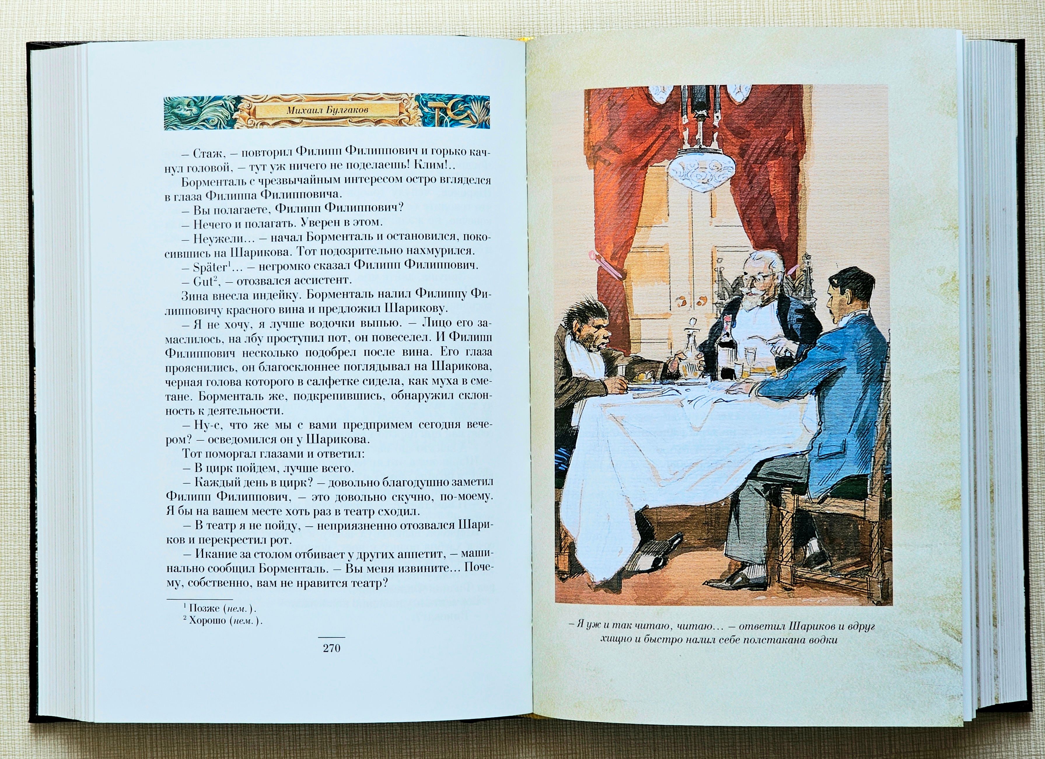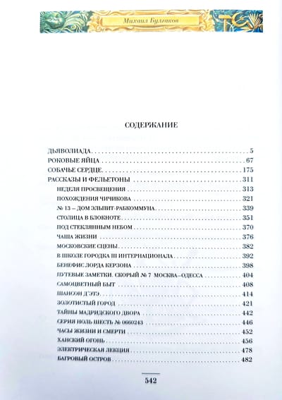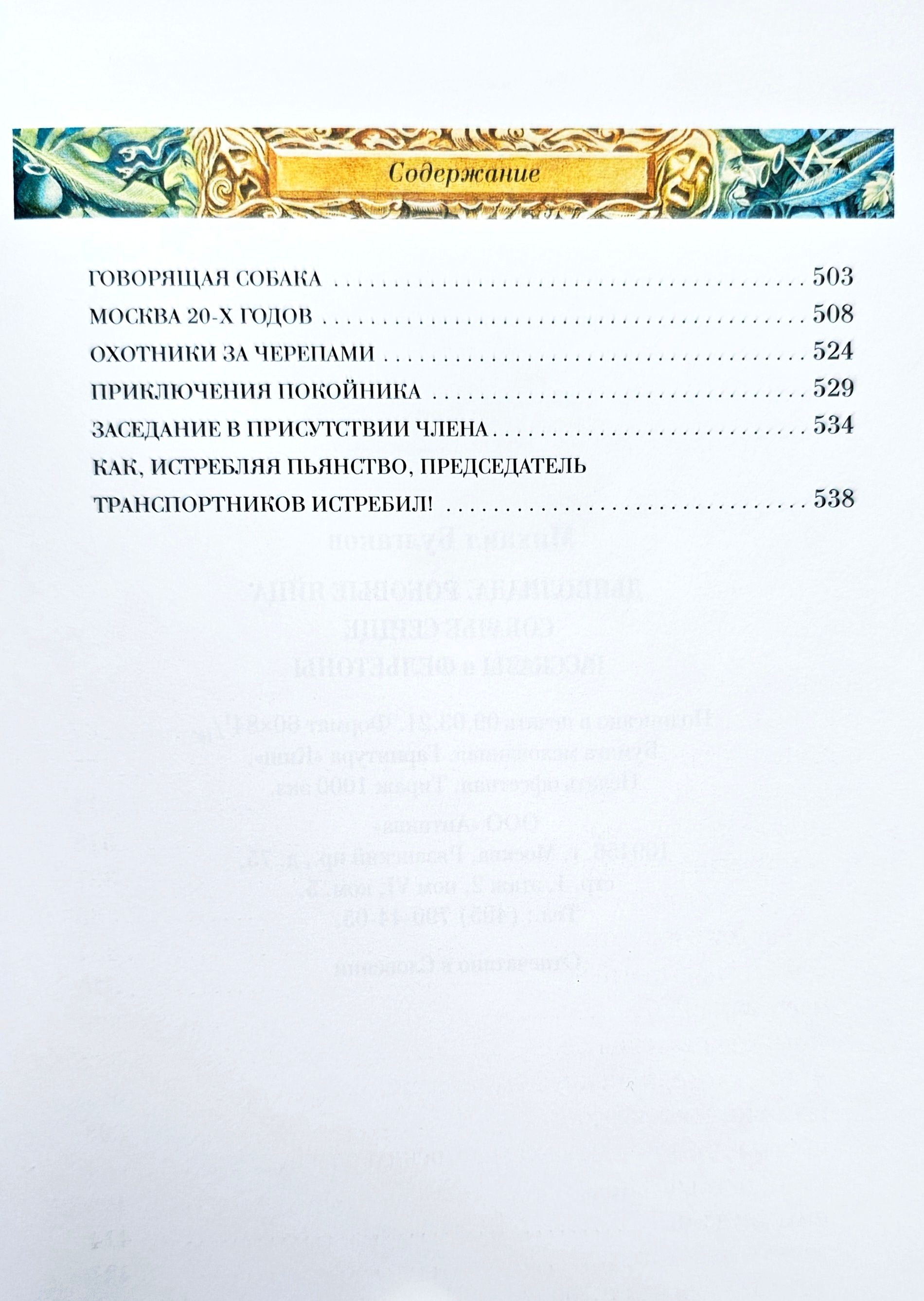 This edition is the second book in a collector's series of Mikhail Bulgakov's works published by Intrade Publishing House. The book includes the novels "The Devoliad", "The Fatal Eggs", "The Dog's Heart", as well as the most interesting stories and feuilletons. The design of the book, including a large number of illustrations prepared especially for this edition, continues and develops the ideas of the first book of this series "The Master and Margarita". The book is published in a limited edition as a real gift to all true bibliophiles. The publishing house plans to continue publishing other most popular works by M.A. Bulgakov in a similar version.