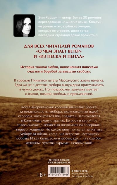 Deborah Samson has been separated from her parents since childhood, living and serving in strangers’ homes in Massachusetts. Growing up, the girl began to dream of a life full of freedom and adventure. When the American colonies began fighting for independence, Deborah disguised herself as a soldier and enlisted in the Continental Army. She fought bravely and fearlessly alongside men. But what price will Deborah have to pay for her deception the moment she meets true love? And what if in love, as on the battlefield, true feelings are impossible to hide?