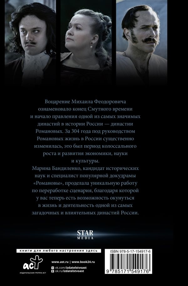 Elected to the Russian throne in 1613, Mikhail Feodorovich began the reign of one of the most significant dynasties in Russian history - the Romanov dynasty. "The Romanovs. History of the great dynasty" - an incredibly exciting journey through the history of Russia XVII - early XX centuries. Reforms of Peter I, the abolition of serfdom, the flowering of culture and science in the Age of Enlightenment, the decline of the monarchy and the subsequent revolution of 1917, as well as many other key events are reflected in the book. The author, screenwriter, candidate of historical sciences, Marina Bandilenko, has done a unique job of reworking the text of the script of the popular documentary series "The Romanovs", supplementing it with new curious facts and quotes from historical sources that did not get on the screen. "Romanovs. History of a great dynasty" - a book that opens the door to the world of splendor, intrigue and luxury and reveals the secrets of one of the most influential and mysterious dynasty, which determined the fate of Russia and left an indelible mark in the history of mankind. You will meet amazing personalities, such as Peter the Great or Paul III, and learn how they made history.