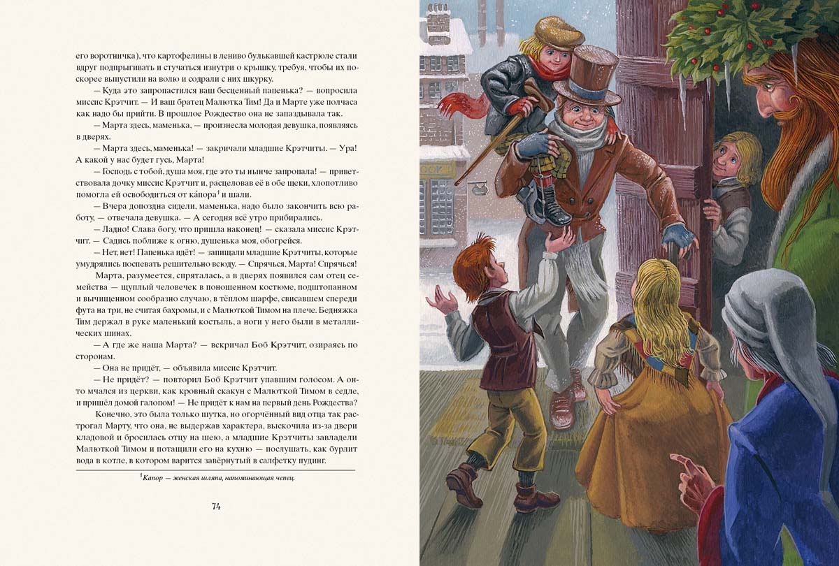 You want to know all the details about this unexpected transformation. This opportunity, along with Dickens's text, is provided by the colorful illustrations by artist Maxim Mitrofanov, who strives to capture every character and every important detail of this magical Christmas story in his drawings.