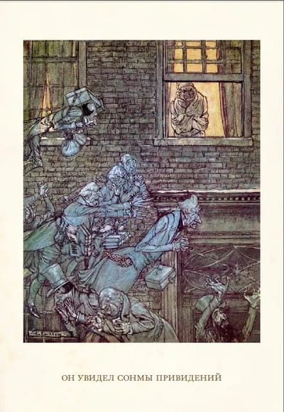 The clinking of coins is the sweetest sound to Mr. Scrooge. The ringing of happy voices he hates. "No heat could warm him," and no frost could penetrate that gloomy miser. But one Christmas Eve, Scrooge's heart beat with an unprecedented vigor: his old companion came to visit him. A companion who died long ago...The spirit of this mystical story is conveyed by Arthur Rackham's magical drawings.