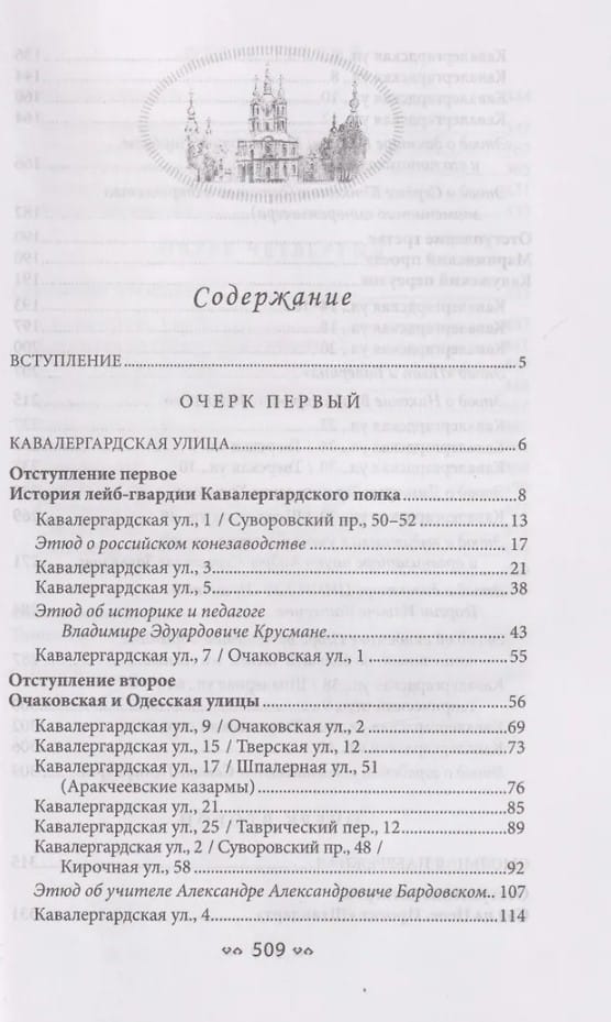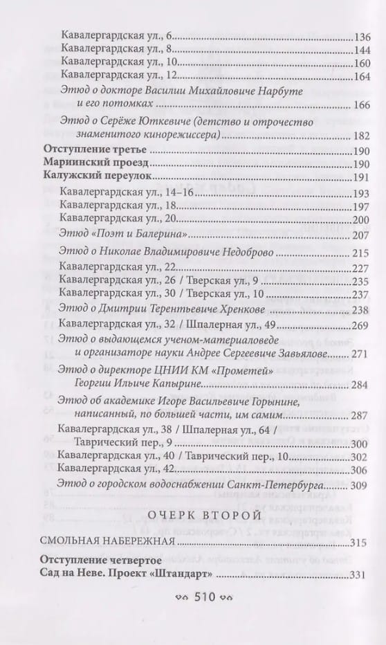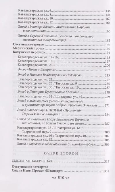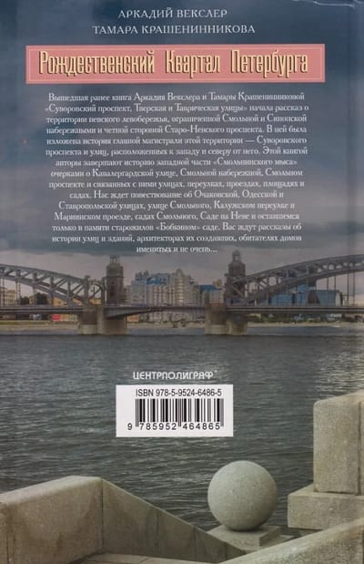 Arkady Veksler and Tamara Krasheninnikova's previously published book, "Suvorovsky Prospekt, Tverskaya, and Tavricheskaya Streets," began by exploring the area along the left bank of the Neva, bounded by Smolnaya and Sinopskaya Embankments and the even-numbered side of Staro-Nevsky Prospekt. It outlined the history of this area's main thoroughfare, Suvorovsky Prospekt, and the streets located to its west and north. With this book, the authors conclude their history of the western part of "Smolninsky Mys" with essays on Kavalergardskaya Street, Smolnaya Embankment, Smolny Prospekt, and the streets, lanes, passages, squares, and gardens connected to them. We'll explore Ochakovskaya, Odesskaya, and Stavropolskaya Streets, Smolny Street, Kaluzhsky Lane, and Mariinsky Drive, the Smolny Gardens, the Garden on the Neva, and the "Bobkin" Garden, which remains only in the memories of old-timers. You'll hear stories about the history of the streets and buildings, the architects who created them, and the residents of the houses, both famous and not so famous...