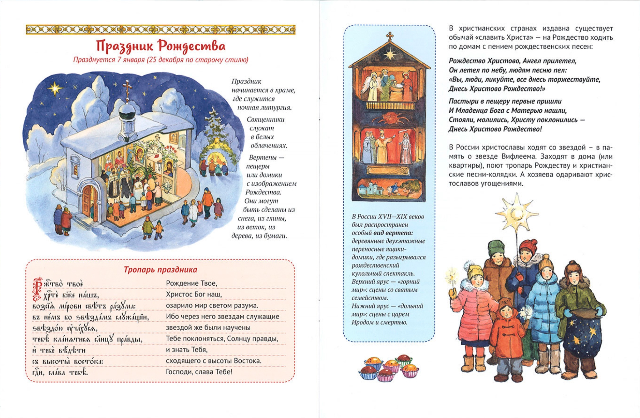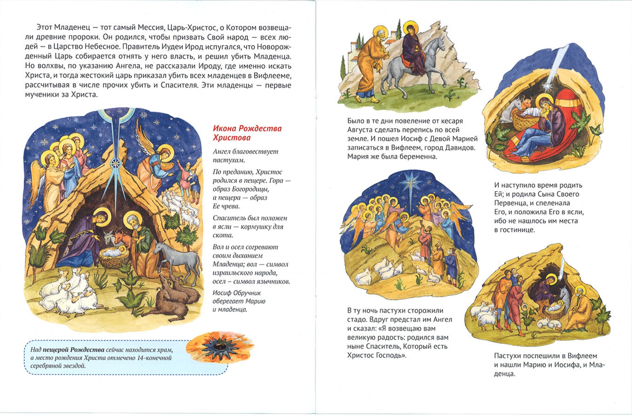 The illustrated book by Anna Saprykina tells about the feast of the Nativity of Christ, how this great event occurred, explains what is depicted on the icon of the holiday, how it is customary to celebrate this holiday in the Orthodox family.