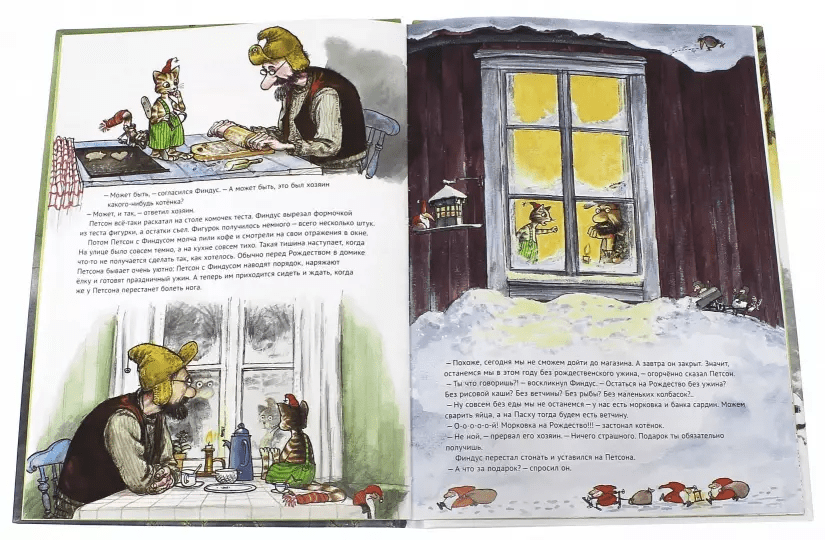 Before Christmas, Petson and Findus have a lot to do: shoveling snow, shopping for a tree, buying treats, and, of course, baking ginger cookies. But at the worst possible moment Petson managed to twist his leg. Will the friends be left without Christmas dinner and a tree?