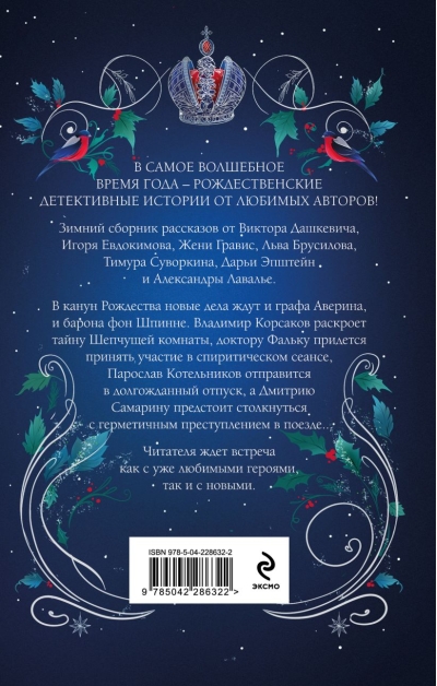 On Christmas Eve, new cases await both Count Averin and Baron von Spinne. Vladimir Korsakov will uncover the mystery of the Whispering Room, Doctor Falk will have to participate in a seance, Paroslav Kotelnikov will go on a long-awaited vacation, and Dmitry Samarin will face a hermetically sealed crime on a train... Readers will encounter both favorite characters and new ones.