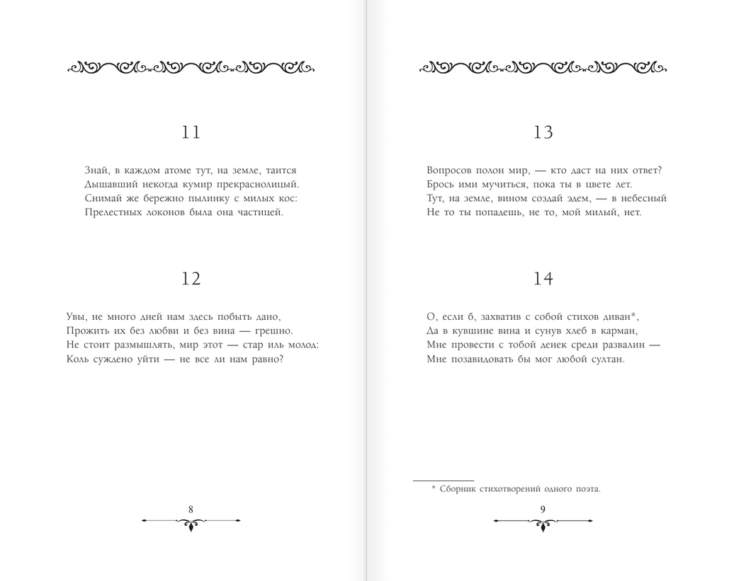 The title of the most famous poet of the East, read all over the world, brought him aphoristic quatrains - rubai, which have become a spiritual treasure of mankind. Omar Khayyam in his aphoristic verses reflects on the meaning of life, on the vulnerability of man in the face of fate, on fleeting moments of joy, glorifies wisdom, love and beauty. Regardless of nationality, religion and culture, everyone finds in them something of his own, something intimate and unspoken.