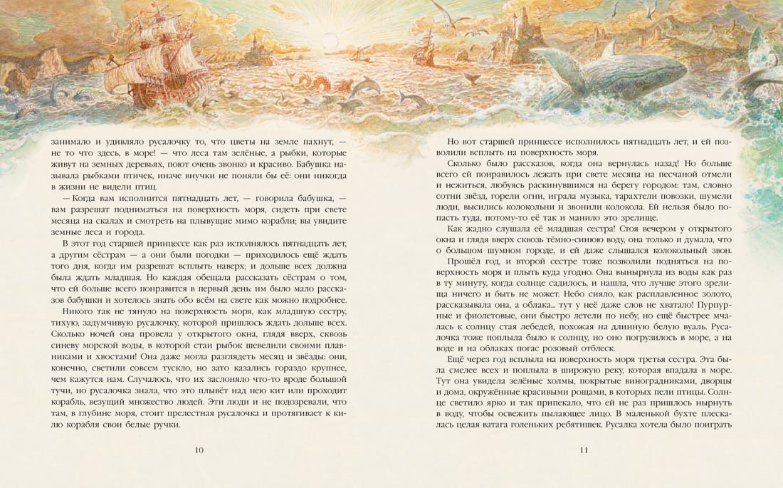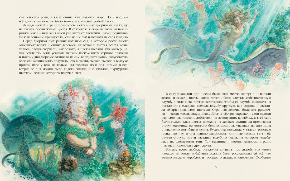The story of the Little Mermaid is magical and sad. The bright shades of turquoise and the glitter of the sun on the sea foam are juxtaposed with the gloomy tones of the ocean depths, reminding us of their terrible inhabitants. Above all, however, it is a story about love. Love that is unrequited and sacrificial, but still bright and hopeful. And it is also a story about how the Little Mermaid found an immortal soul, the author's reflections on the meaning of life and its values and on faith, which works wonders. "The Little Mermaid" - the first book in a series of author's projects of St. Petersburg artist Anton Lomaev. It has undergone many reprints in several languages of the world, but still remains a vivid example of original and profound reading of the artist's timeless fairy tale by Hans Christian Andersen. This book is addressed to a wide range of readers, both adults and children.