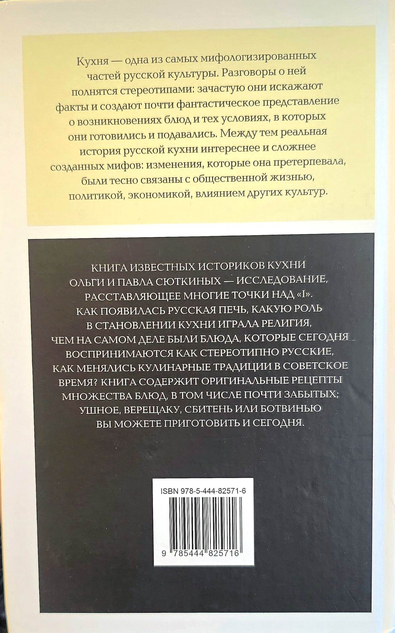 Cuisine is one of the most mythologized parts of Russian culture. Discussions about it are rife with stereotypes: they often distort the facts and create an almost fantastical understanding of the origins of dishes and the conditions in which they were prepared and served. Meanwhile, the real history of Russian cuisine is more interesting and complex than these myths: the changes it has undergone have been closely linked to social life, politics, economics, and the influence of other cultures. This book by renowned culinary historians Olga and Pavel Syutkin is a study that dots many i's and crosses many t's. How did the Russian stove appear, what role did religion play in the development of cuisine, what were the real dishes that are now perceived as stereotypically Russian, and how did culinary traditions change during the Soviet era? The book contains original recipes for many dishes, including nearly forgotten ones; you can still make ushnoye, vereshchaka, sbiten, or botvinya today.