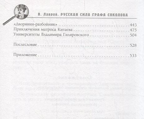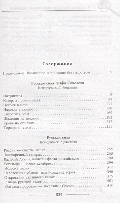 Count Sokolov, the genius of detective work, has become a truly national hero, a role model. In the first part of the book - "The Russian Strength of Count Sokolov" - he finds himself in absolutely incredible situations. But thanks to coolness and exceptional physical strength with honor comes out of the most difficult positions.
