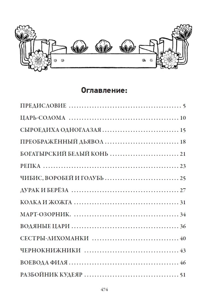 The book includes one hundred and twelve Russian folk tales collected and processed by the famous children's writer, publisher, translator and one of the founders of the children's magazine "Murzilka" Alexander Alexandrovich Fedorov-Davydov (1873-1936). Most of these tales are unfamiliar to modern readers. The edition is decorated with dozens of bookmarks, splash pages and drawings by the artist Alexander Petrovich Apsit (1880-1943).