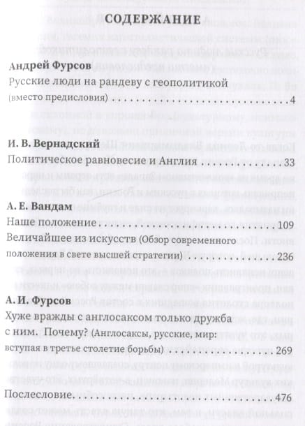This collection presents four papers by three authors - I. V. Vernadsky, A. E. Vandam (Yedrikhin) and A. I. Fursov. The works are devoted to various aspects of the confrontation between Russia and Great Britain as civilizational, social and geopolitical antipodes. The current all-out war against Russia, launched by the Post-West under the leadership of the Anglo-Saxons and aimed, it seems, at the final solution of the Russian question by them, gives this collection an exceptional relevance.