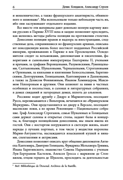 During the Age of Enlightenment, more than six hundred Russians lived in Paris: nobles, diplomats, writers and scholars, artists and collectors, Freemasons and adventurers. Russian Parisians associated with Rousseau and Diderot, d'Alembert and Marmontel, corresponded with Voltaire, and at the same time kept dancers, played cards, fell into debt, and ended up in prison.