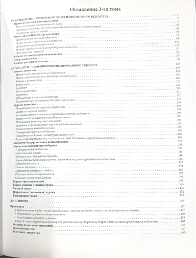The third and final volume of the publication is devoted to the uniforms of the Imperial Court, court knights and ladies, class officials of the court, military, and naval departments, and employees of the paramilitary formations of the civilian department. The conclusion includes guides to embroidery patterns, uniform tailcoats, and uniform buttons, as well as a reference guide for the entire publication.