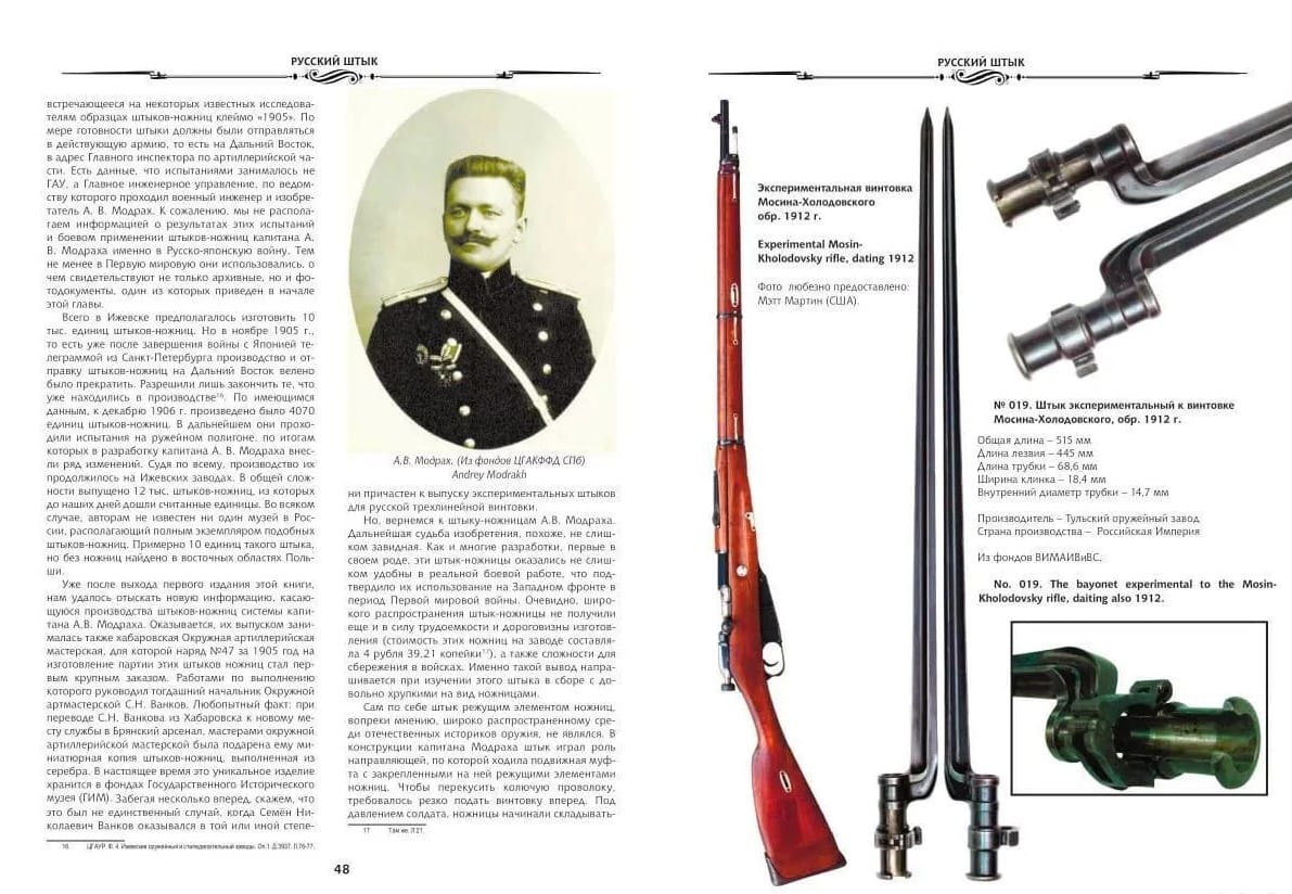 This book is a significantly expanded, supplemented, and revised monograph devoted to bayonets for the Russian three-line rifle model 1891, developed by the outstanding Russian gunsmith Sergei Ivanovich Mosin.