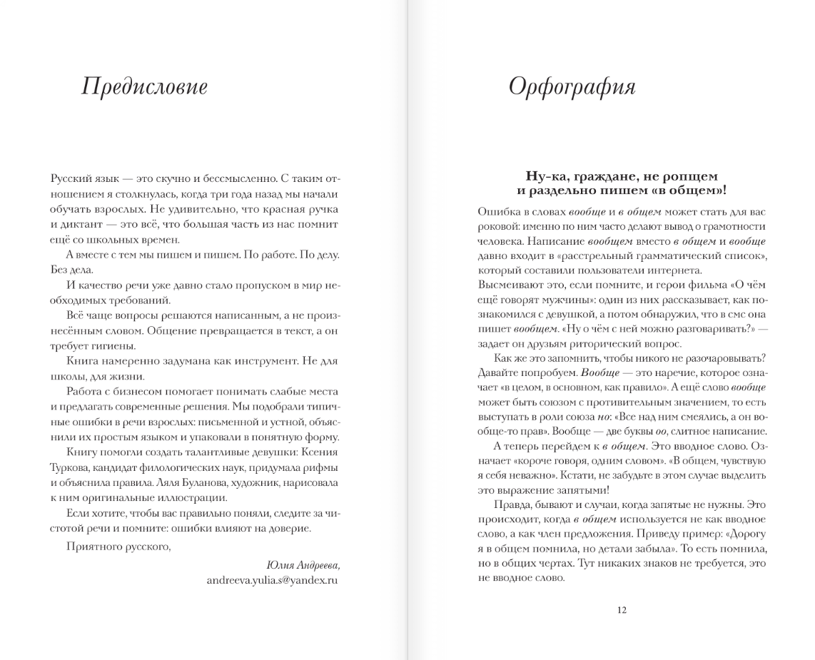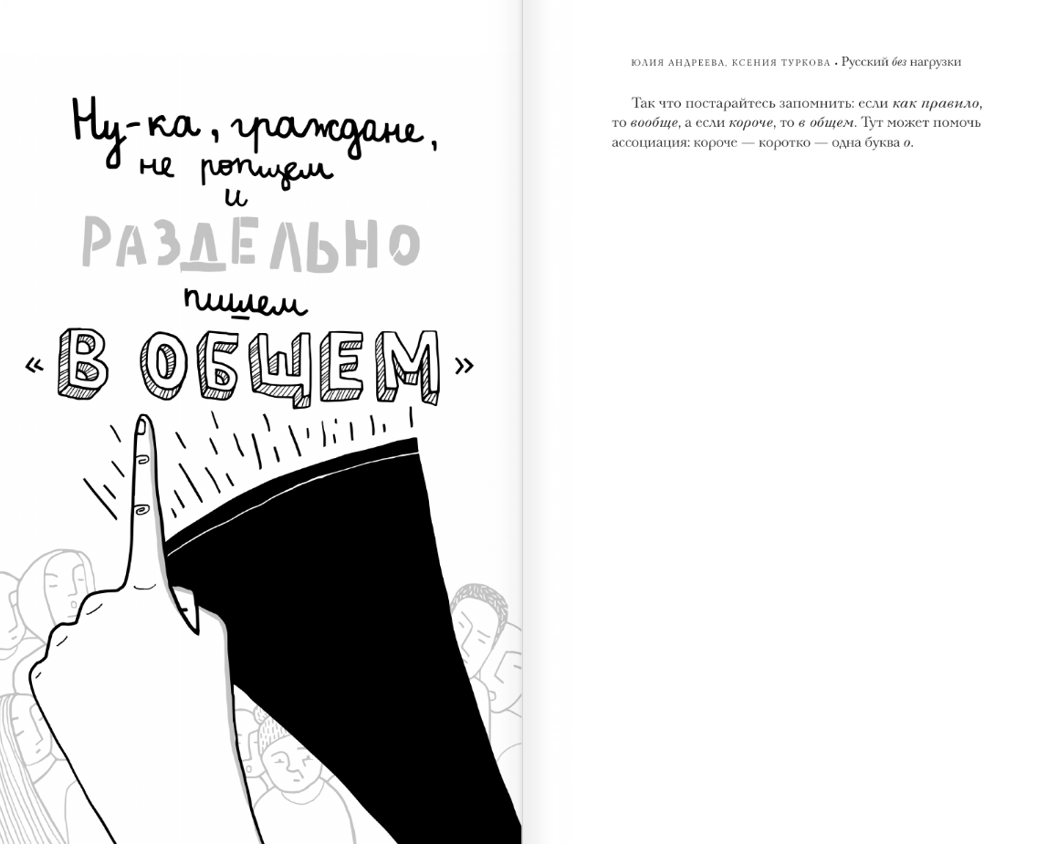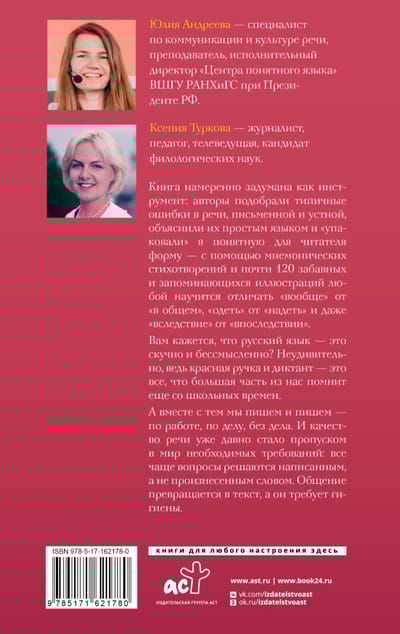 The book is intentionally conceived as a tool: the authors have selected typical errors in speech, written and spoken, explained them in simple language and packaged them in an understandable form for the reader - with the help of mnemonic poems and almost 120 funny and memorable illustrations anyone will learn to distinguish "in general" from "in general", "put on" from "put on" and even "as a consequence" from "subsequently".