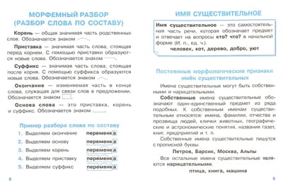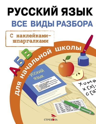 The textbook summarizes the rules of phonetic, morphemic and morphological parsing, as well as the rules of parsing different types of sentences. Examples are given for each type of parsing. Multicolored stickers-cheat sheets will save time and help the student to remember the material quickly and reliably. They can be glued to the inside cover of a notebook, textbook or simply in a visible place. The manual is intended for work at school and at home.