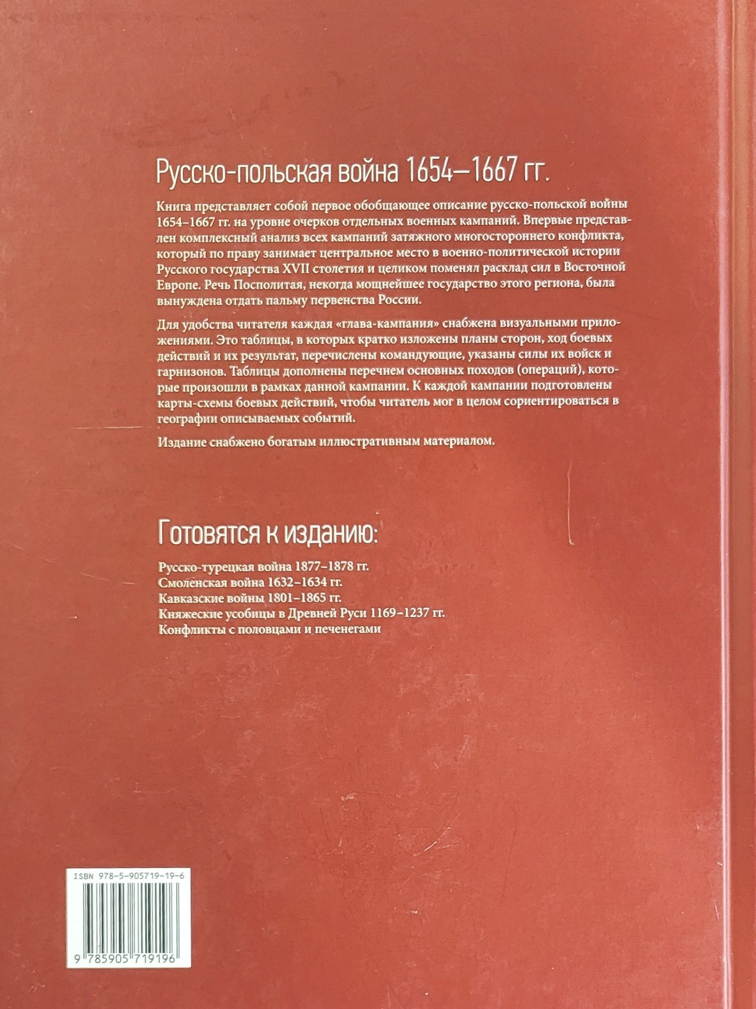The book is the first generalized description of the Russian-Polish war of 1654-1667 at the level of sketches of individual military campaigns. It is the first to present a comprehensive analysis of all campaigns of the protracted multilateral conflict, which rightfully occupies a central place in the military and political history of the Russian state of the XVII century and completely changed the balance of power in Eastern Europe. The Polish-Lithuanian Commonwealth, once the most powerful state in the region, was forced to give the palm of primacy to Russia. For the convenience of the reader, each "chapter-campaign" is provided with visual appendices. These are tables that summarize the plans of the parties, the course of hostilities and their results, listed commanders, the strength of their troops and garrisons. The tables are supplemented with a list of the major campaigns (operations) that took place during the campaign. For each campaign maps-schemes of military operations are prepared, so that the reader could generally orient himself in the geography of the described events. The publication is supplied with rich illustrative material.