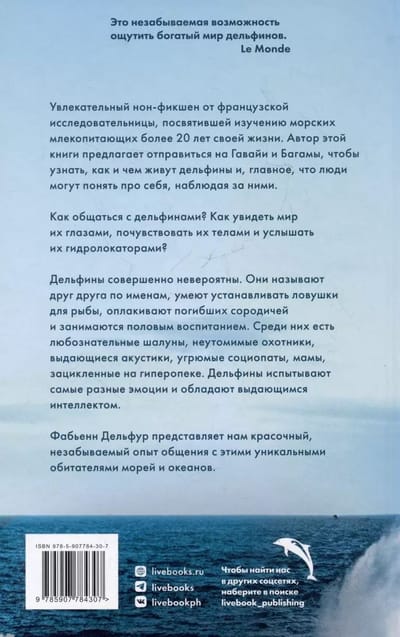 Fascinating, full of live observations and unexpected discoveries non-fiction from Fabienne Delfour, a researcher who has been studying marine mammals in various parts of the world for more than 20 years - from the Atlantic coast of France to Hawaii.