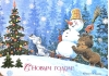 Happy New Year! Snowman on a sled. Magnet.