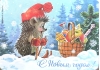 Happy New Year! Hedgehog and a basket of gifts. Magnet