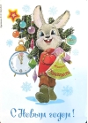 Happy New Year! Bunny is carrying a Christmas tree. Magnet.