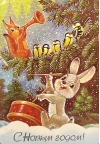 Happy New Year! Bunny plays the drum. Magnet.