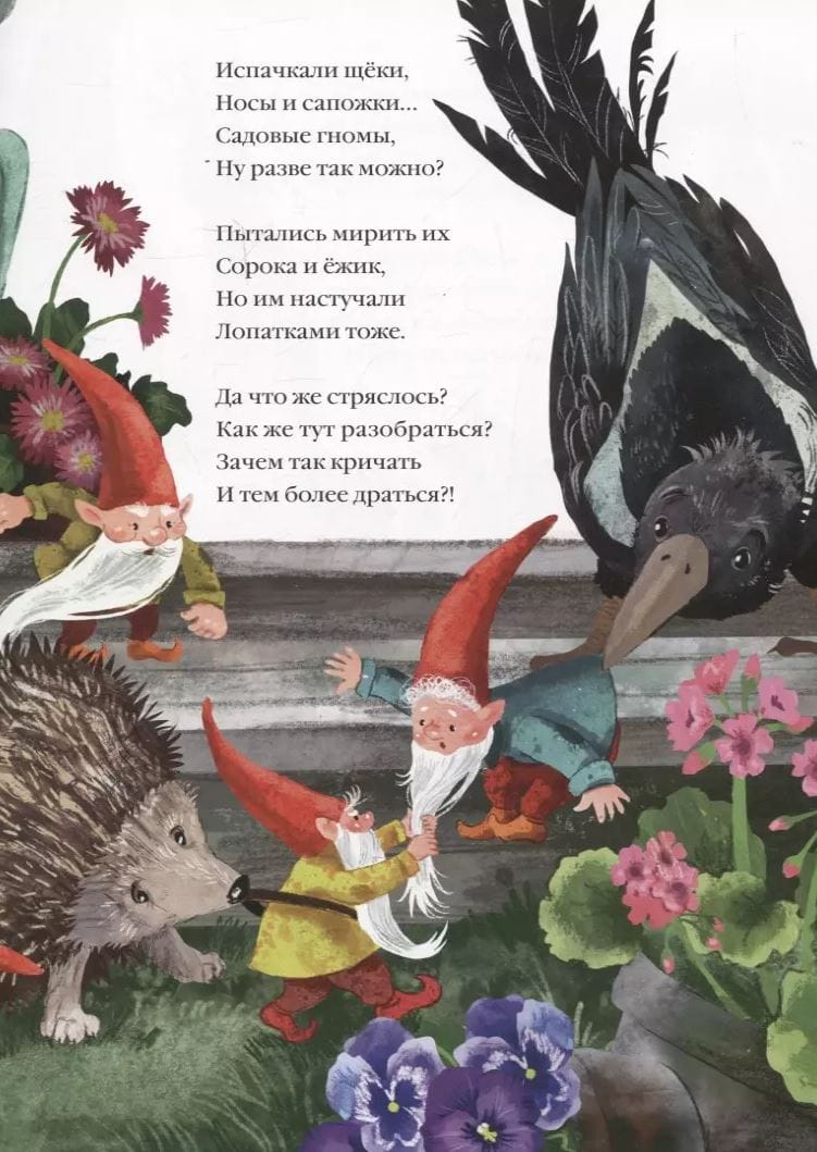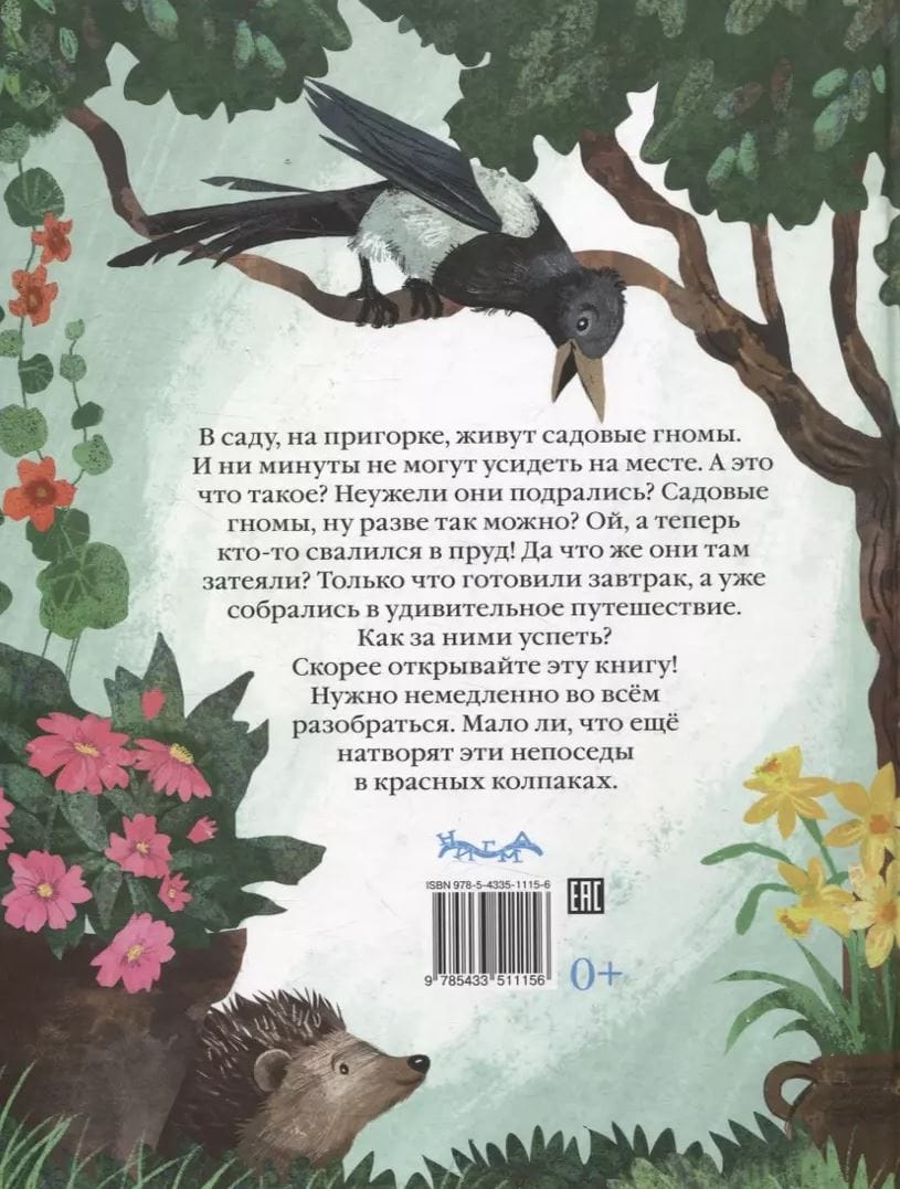 In the garden, on a hill, live the garden gnomes. And they can't stay still for a minute. What's that? Did they have a fight? Garden gnomes, how could they? Oh, now someone's fallen into the pond! What on earth are they up to? They've just made breakfast and they're off on an amazing journey. How can I keep up with them?