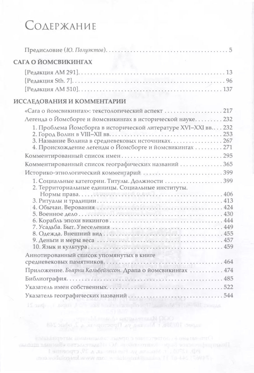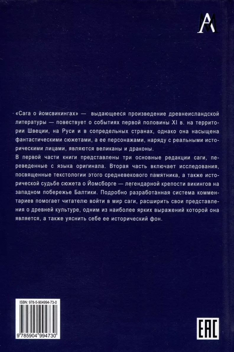 The first part of the book presents three main editions of the saga, translated from the original language. The second part includes research on the textology of this medieval monument, as well as the historical fate of the story about Yomsborg - the legendary Viking fortress on the west coast of the Baltic. A detailed system of comments helps the reader to enter the world of the saga, expand their ideas about the ancient culture, one of the most vivid expressions of which it is, and understand its historical background.