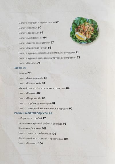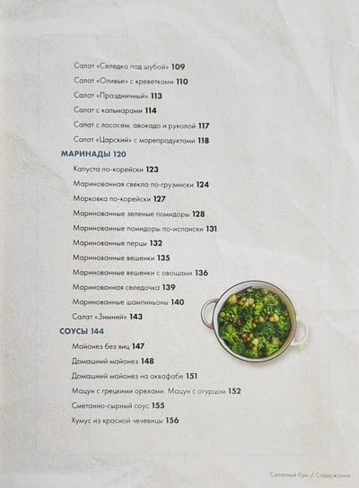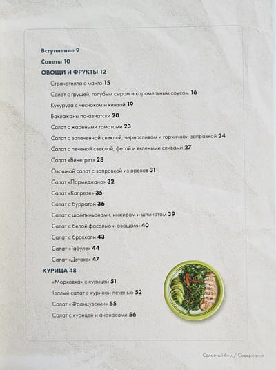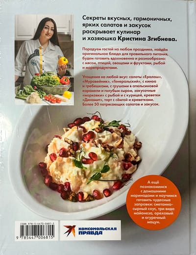 The secrets of delicious, harmonious, colorful salads and appetizers are revealed by cook and hostess Kristina Zgibneva. We will please guests at any holiday, find original dishes for proper nutrition, for festive occasions and appetizers "on short notice", we will cook inspired and varied: with meat, poultry, vegetables and fruits, fish and seafood. Treats for every taste: salads "Eralash", "Ant Farm", "Generalsky", with quinoa and scallops, with pears in orange caramel and blue cheese, appetizer "carrots" with fish and chicken, shrimps "Dynamite", cake with salmon and shrimps. Over 50 fabulous salads and appetizers. We will also get acquainted with homemade marinades and learn how to make wonderful dressings: sour cream and cheese sauce, three kinds of mayonnaise, nut and cucumber matsun. You can never have too many salads!