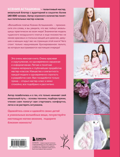 "Magic dress by Ksenia Astashkina" - say these words, and you will see that knitters almost all over the world will understand you! The famous model of the wonderful airy dress and many more no less beautiful and stylish things for girls, girls and women have already been appreciated by thousands and thousands of knitters from different countries. And now they are waiting for you on the pages of this book! What is worth only the sensational boucle coat, for which there are real queues!