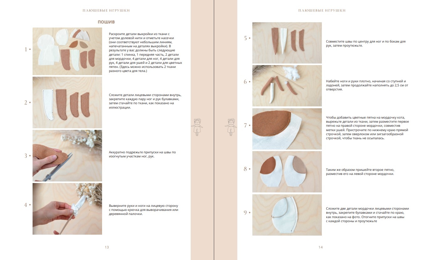 This practical guide will take you step by step through the process of creating soft toys and their wardrobes. There are no lengthy introductions—just hands-on practice. From the very first page, we'll begin sewing various animals: fluffy cats, funny bunnies, and cuddly teddy bears. You'll learn how to choose fabric, sew neat seams, and shape the face to create a truly expressive toy.