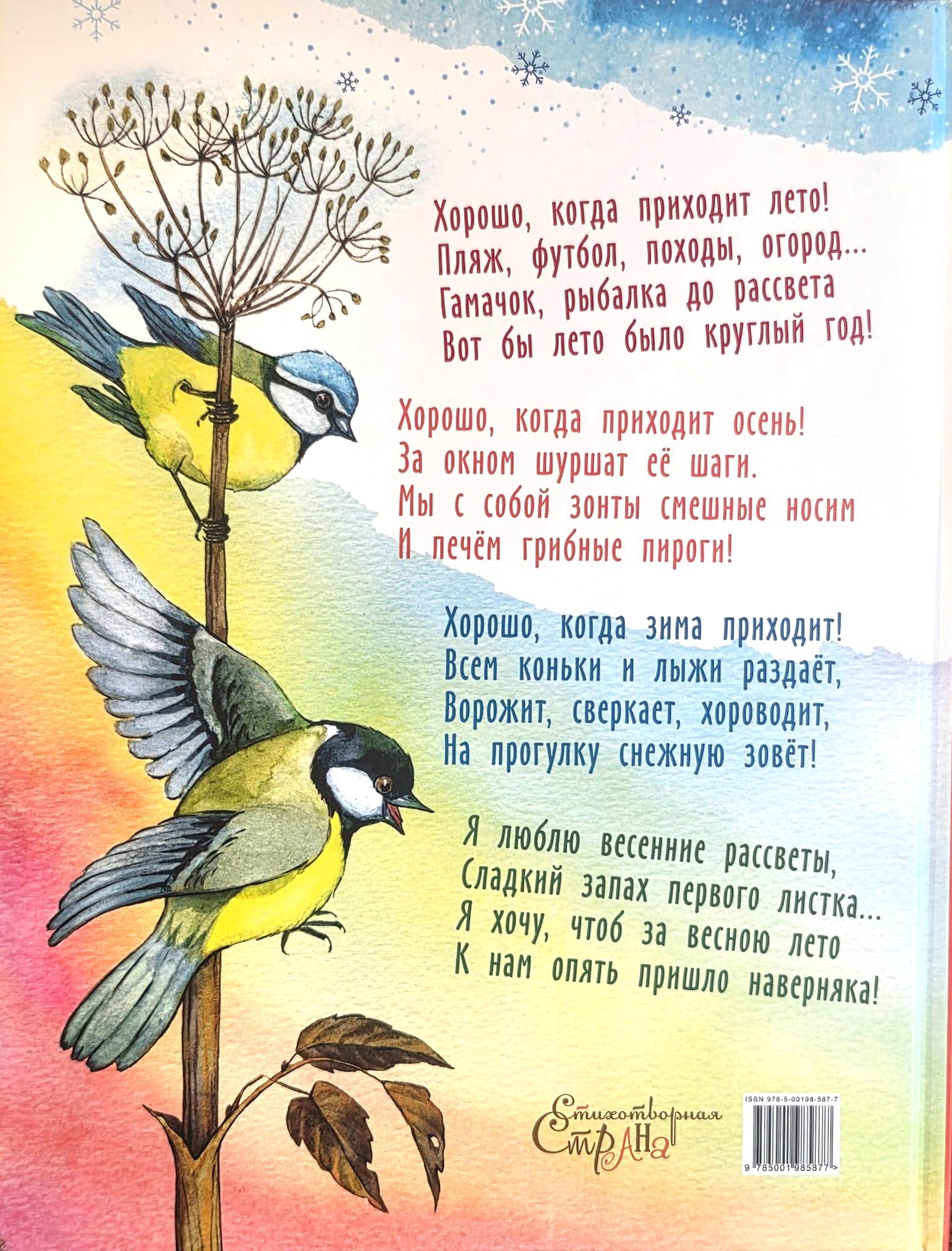 Want to know which season is the best? Then open a book by Natalia Karpova and, along with the cheerful, welcoming characters in her poems, admire the sun's rays, listen to the gentle whisper of the sea, gather bouquets of colorful autumn leaves, and have fun racing on icy paths... And you'll probably agree with the author that the best season is the one that bestows its kind miracles upon us right now.