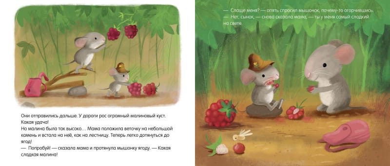 "The Best Little Mouse in the World" is a cute board book about how babies are the most precious and important thing parents have. A mother mouse and her little mouse go for a walk in the forest to listen to the wonderful singing of birds and pick sweet berries. And for a mother, there is nothing more important and no one more beloved in the world than her little son.