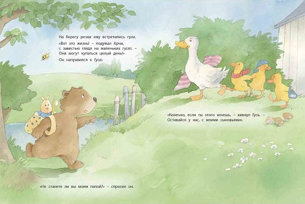 A touching story about a bear cub who resented his daddy and decided to find another family. He tried living with tigers, geese, snakes, storks and even whales. But nowhere did he feel like he belonged. And in the end he realized that he wanted... home! A funny and instructive story teaches kids to cherish their family. For children up to 3 years old.